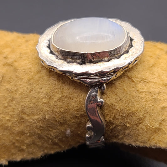 White Labradorite "Moonstone" Ring, Sterling Silver, Size 7.5