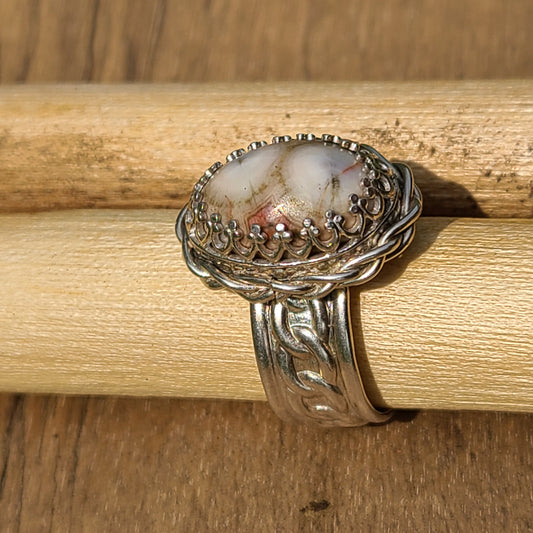 Fossil Dinosaur Bone Ring, Sterling Silver, Size 11.5